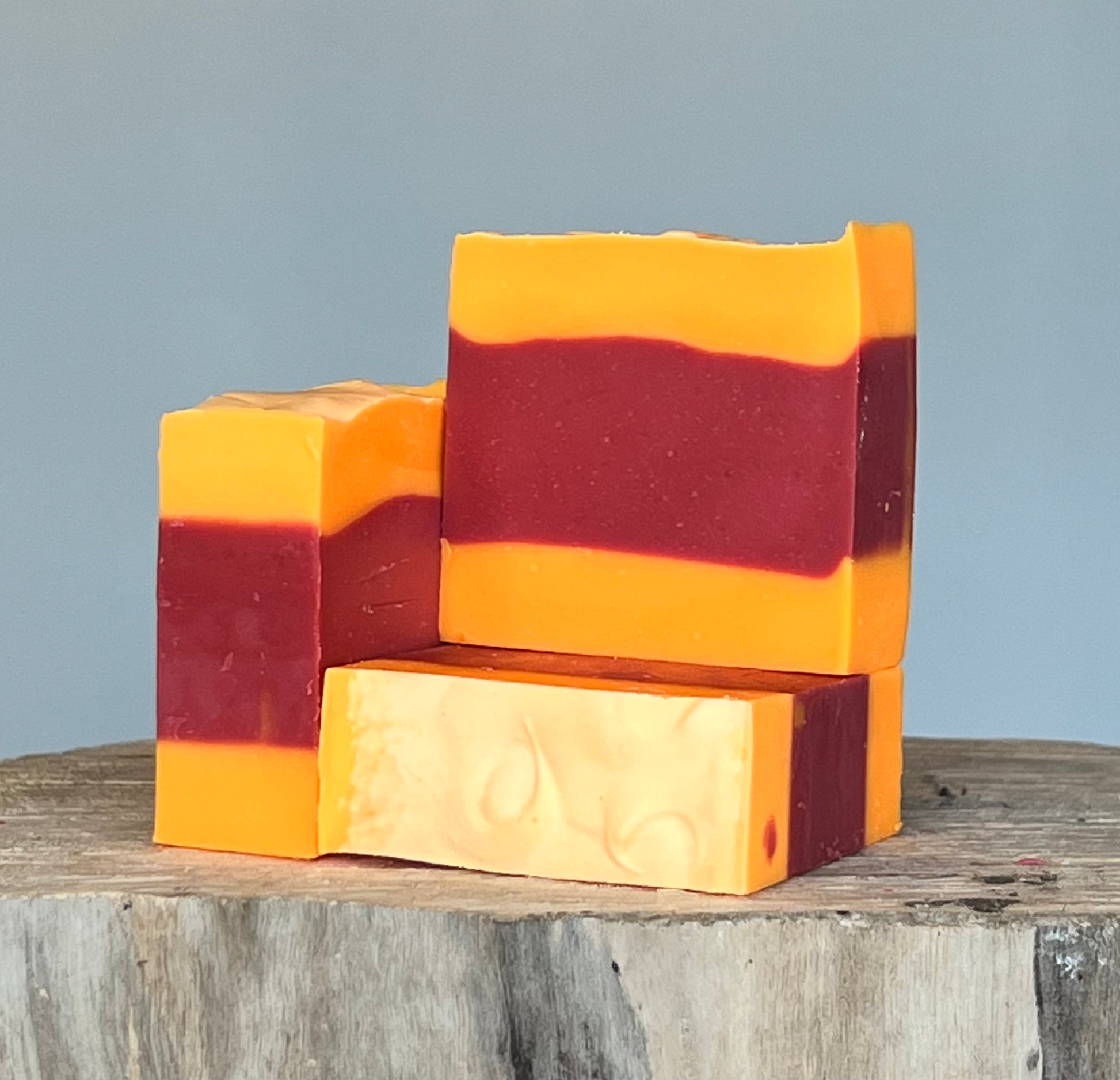 This handmade soap is crafted with love and care, infused with the invigorating scent of Blood Orange. As you lather up, the top notes of Bergamot and grapefruit instantly awaken your senses, providing a burst of freshness.