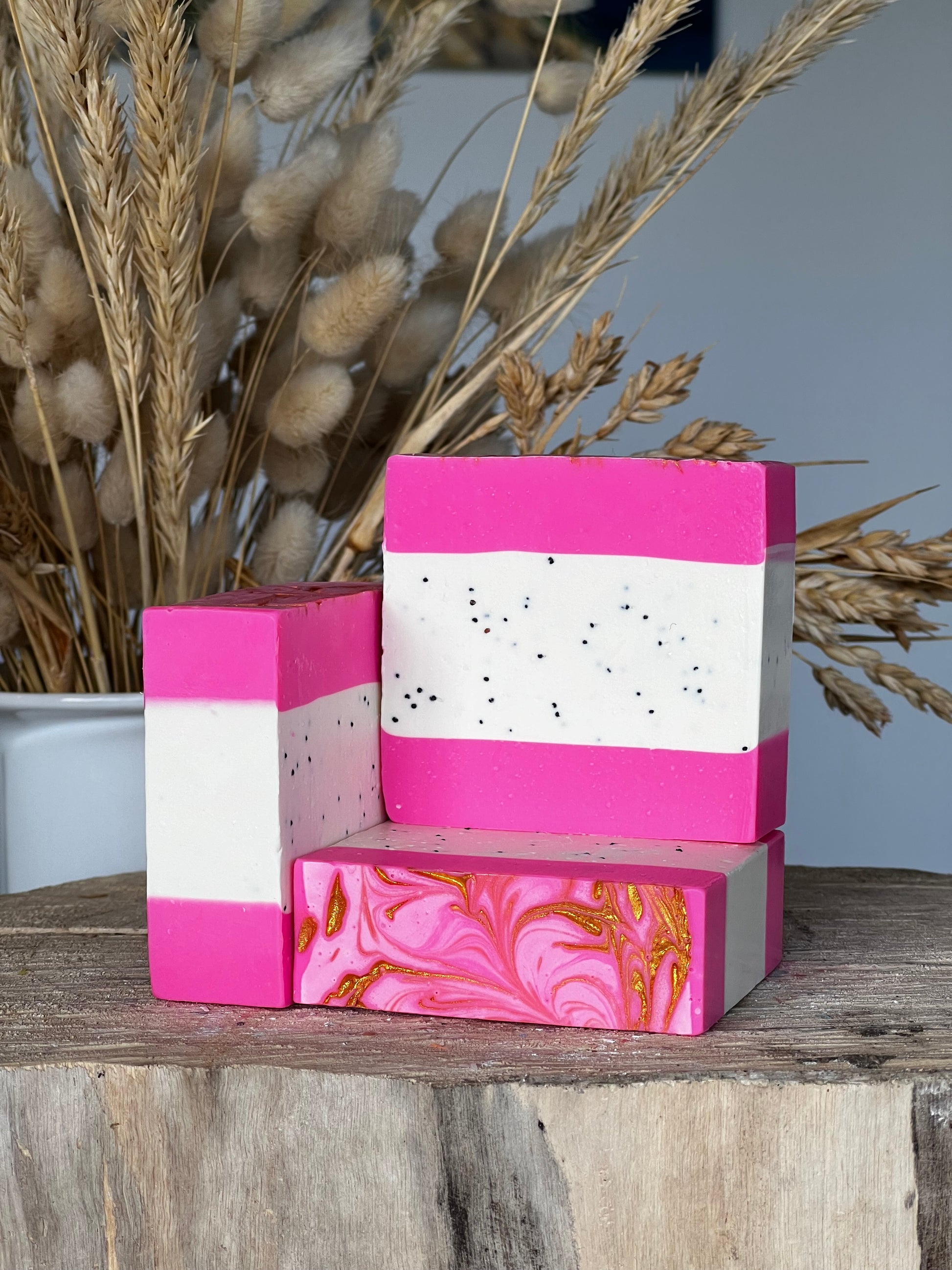 The soap is carefully crafted by hand to ensure that each bar is unique and of the highest quality. The natural ingredients are carefully selected and blended to create a soap that is gentle, nourishing, and luxurious. It is perfect for anyone who wants to indulge in a little bit of luxury while taking care of their skin. The exotic scent of Dragonfruit and the warm, spicy