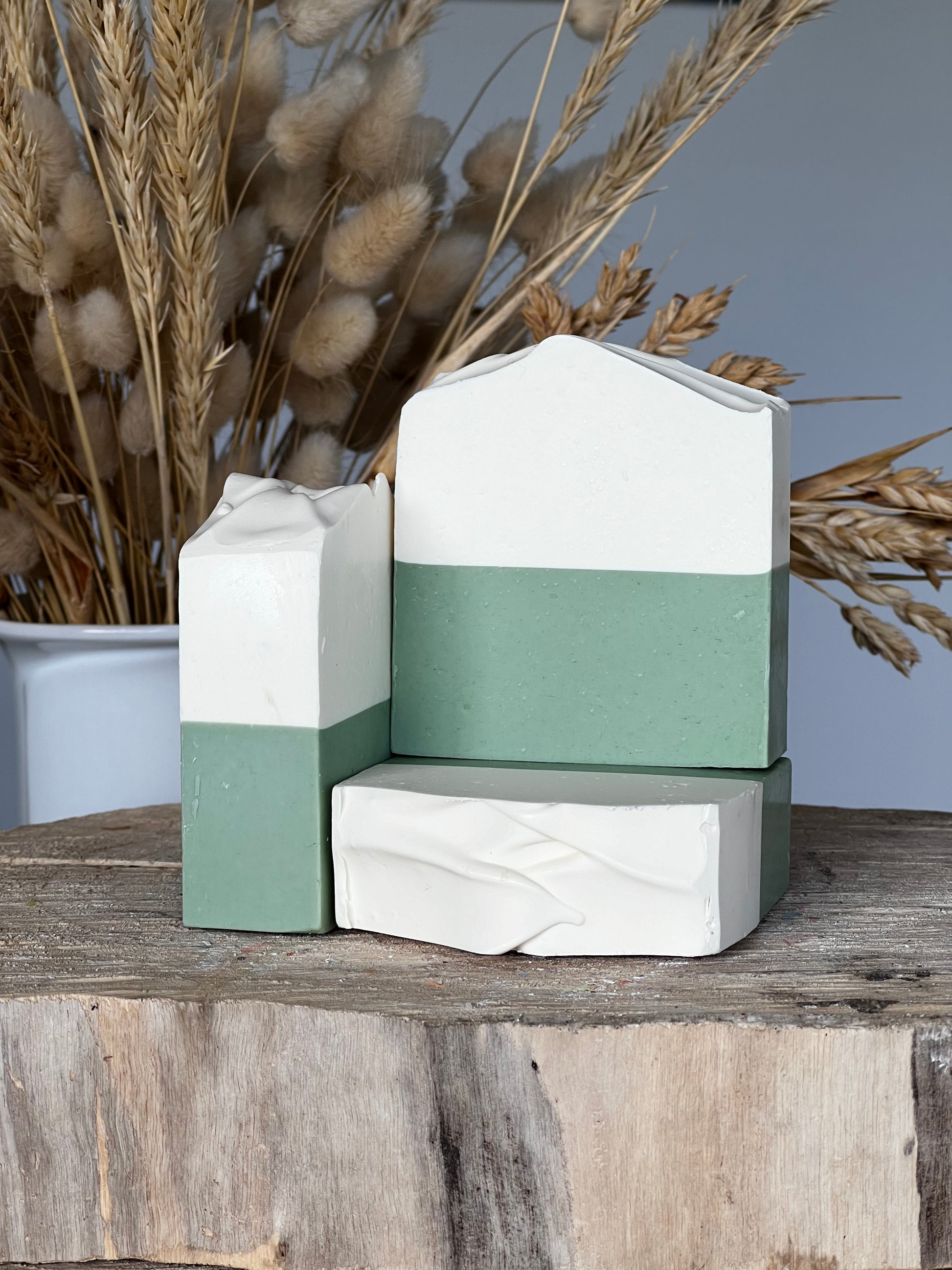 At the base of this soap, you'll find the subtle and grounding aromas of soft woods and sage. These earthy undertones add depth and complexity to the fragrance, creating a well-rounded olfactory experience.