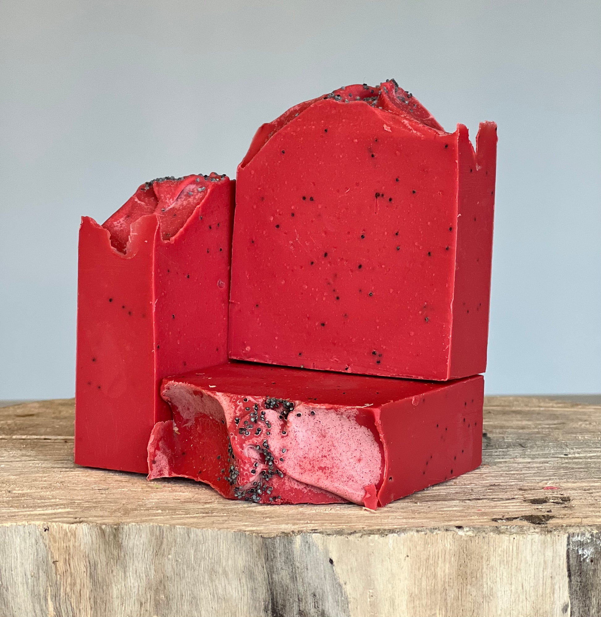 Indulge in the invigorating scent of strawberries with this exquisite handmade soap. The top notes of sun-kissed strawberry and zesty lemon peel awaken your senses, creating a refreshing and uplifting experience from the moment you lather up.