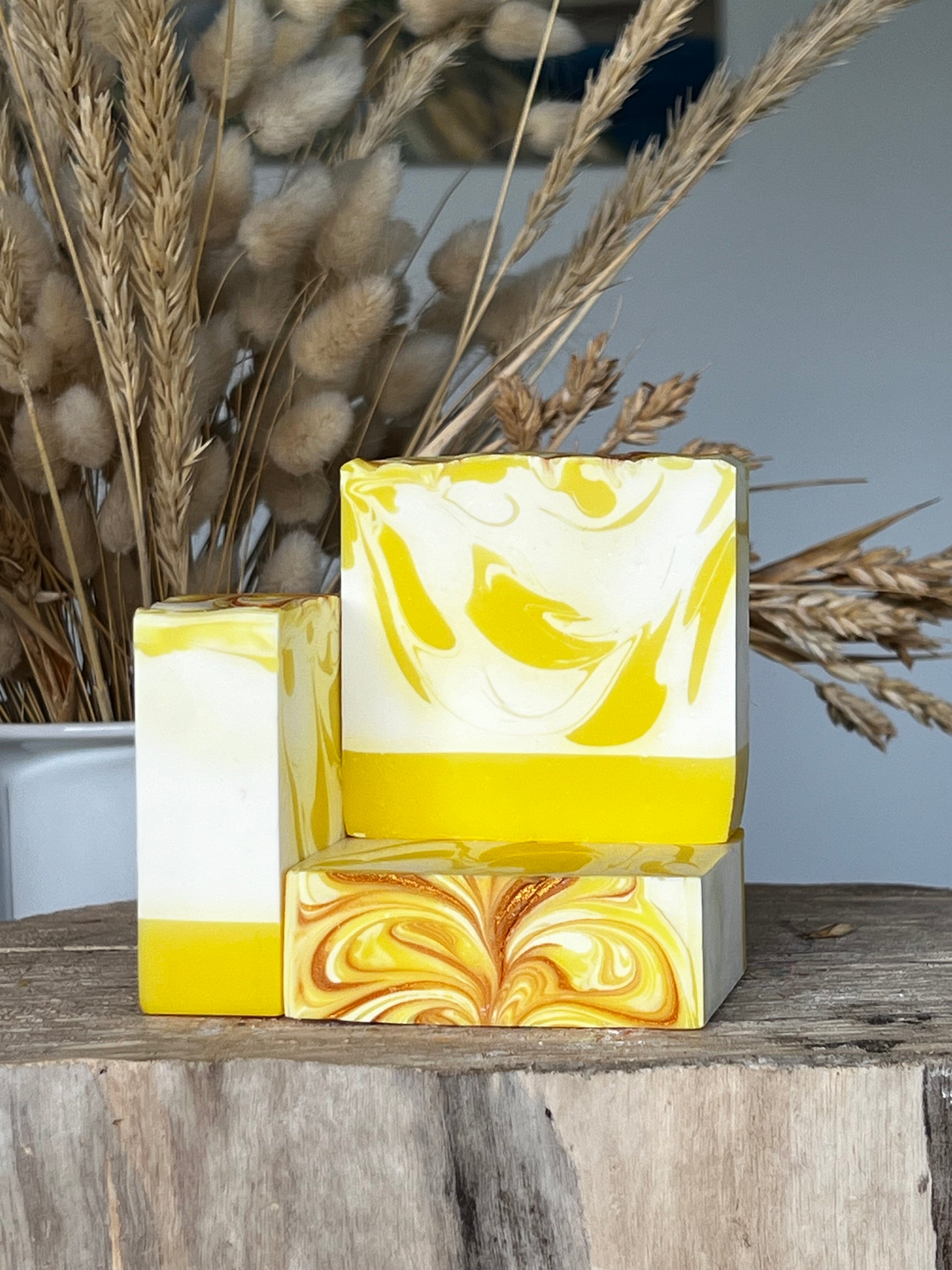 All our soaps are handmade in small batches. We use the cold process method and natural skin loving palm - oil free ingredients. Our soaps are then left to cure for 4-6 weeks. They are hand cut and hand packaged, due to the unique hand made process, each bar will vary slightly in size, shape and appearance to the photo, but the minimum weight of each bar is 110g.